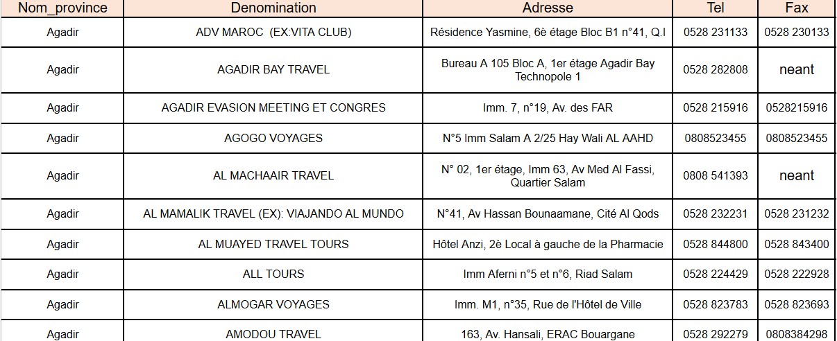 As an officially licensed tour guide certified by the Moroccan Ministry of Tourism (DECISION GVCT Approval number: 2898), I am pleased to provide you with comprehensive information regarding accredited travel agencies in Morocco, as recognized by the Ministry of Tourism. This exclusive resource offers you access to an extensive directory of reputable travel agencies, complete with their respective contact details and professional credentials.