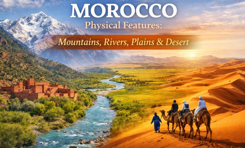 The Morocco physical features are among the most varied of any country on the African continent. Covering approximately 446,300 km² in the northwestern corner of Africa, Morocco encompasses towering mountain chains, fertile Atlantic coastal lowlands, semi-arid interior plateaus, and vast Saharan expanses — all within one national territory. Whether you are planning a trip or studying North African geography, understanding Morocco’s physical features is the essential starting point for appreciating the country’s landscapes, climate, biodiversity, and regional contrasts.